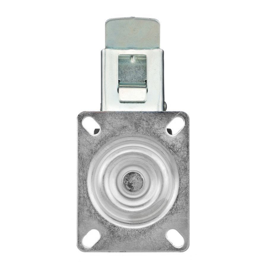 Роликовый (игольчатый) подшипник расположен в углублении, выдавленном под прессом, и содержит цилиндрические ролики подшипника. Кронштейн изготовлен прессованием из листовой стали. В поворотном узле двухрядный шарикоподшипник. Кронштейн оснащен тормозом блокирующим вращение колеса и вилки относительно площадки крепления.