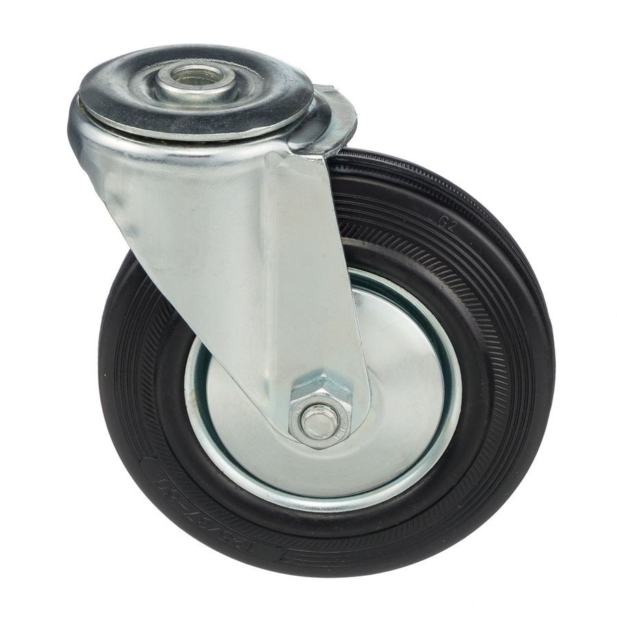 Колесо поворотное с отверстием под болт 12мм., 4004-125, диаметр 125мм., грузоподъемность 100кг.