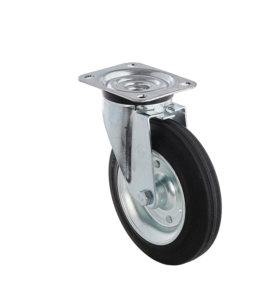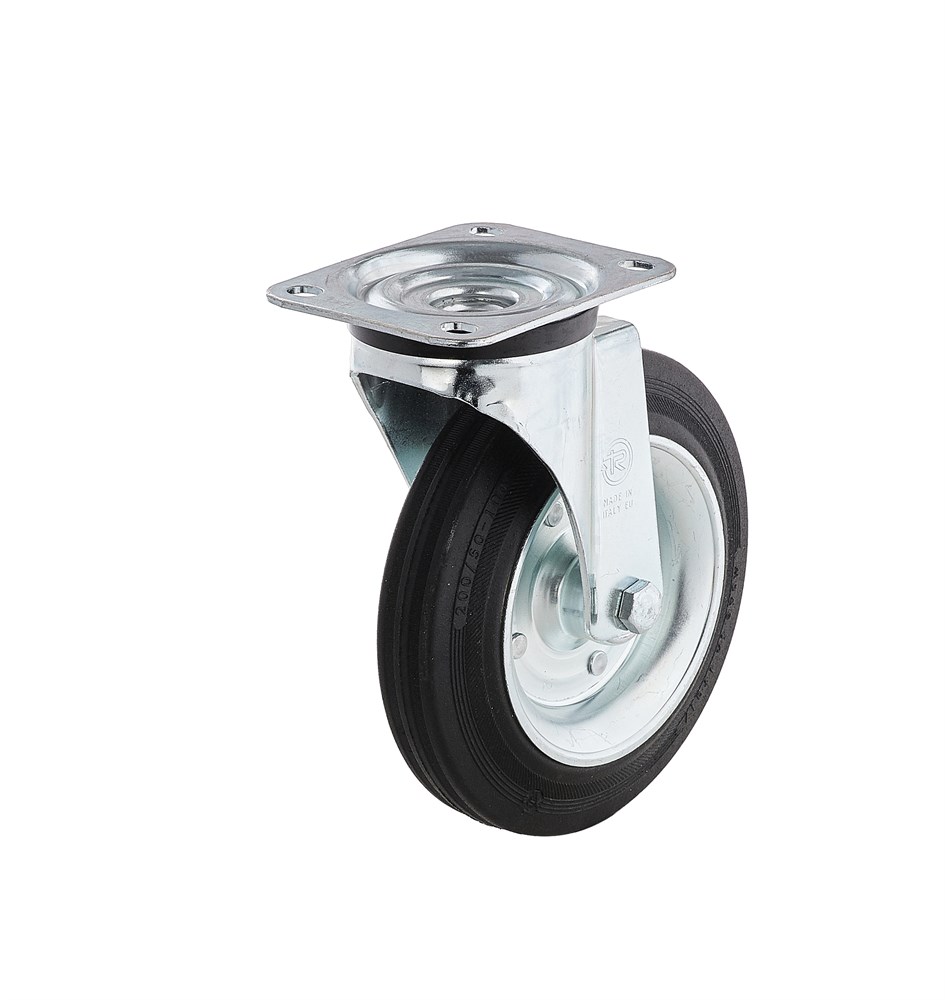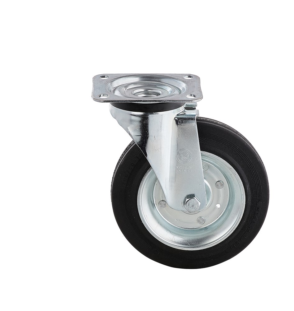 Колесо поворотное промышленное из черной резины.