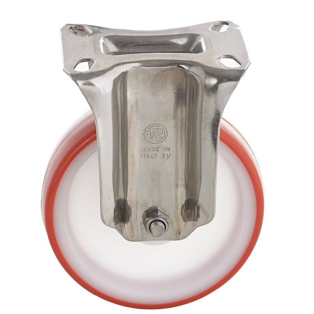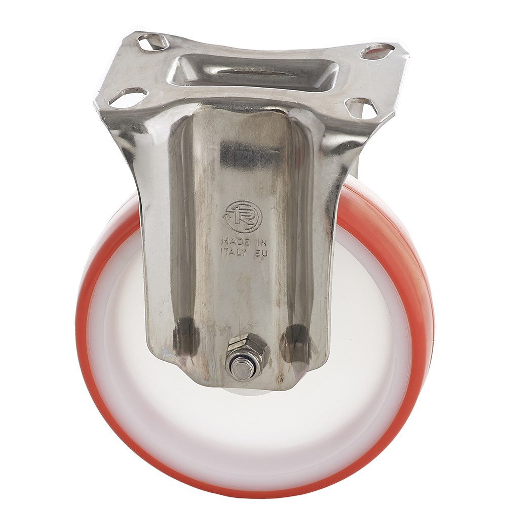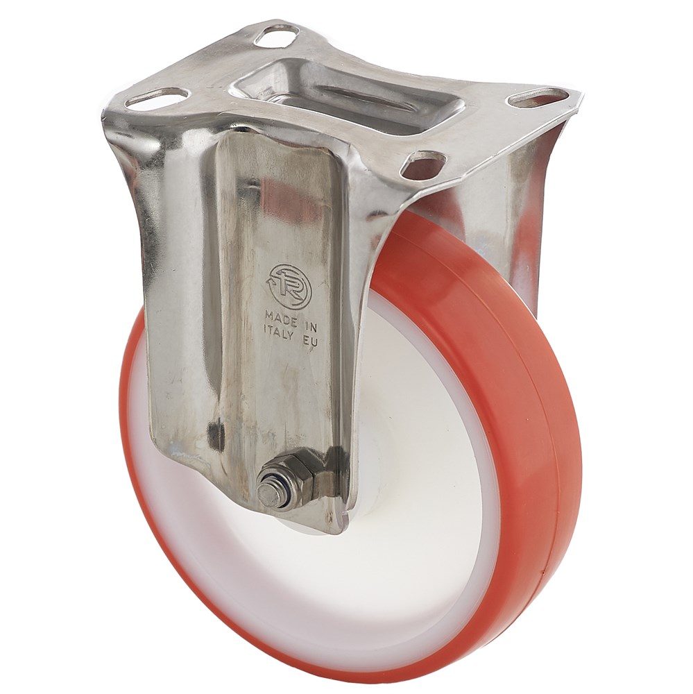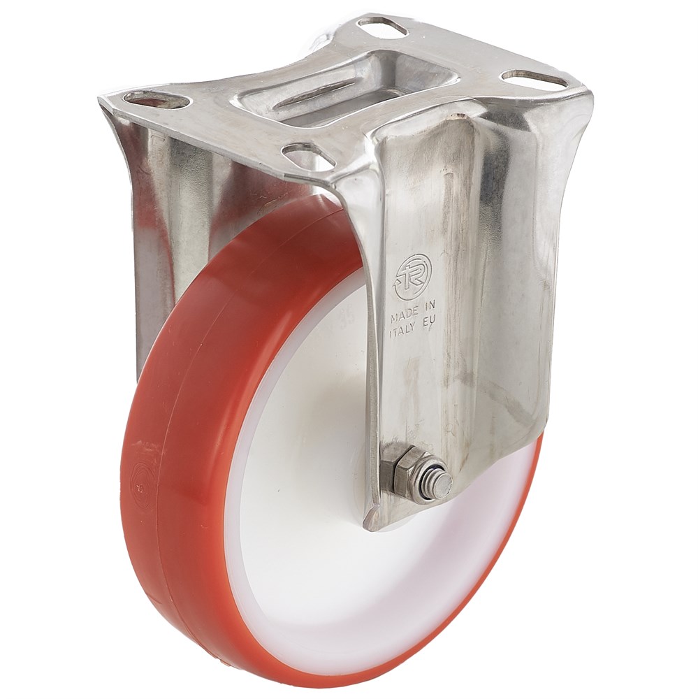 Контактный слой из термопластичного полиуретана твердостью 55 Шор D. Основание: полиамид 6. Ступица оснащена подшипником скольжения (втулка). Качественный фиксированный кронштейн серии NL. Полиуретановый слой значительно снижает шум и вибрацию, бережно относится к полам. Отличные характеристики сопротивлению качения и эластичности, высокая устойчивость к износу и сопротивляемости усилию на разрыв.