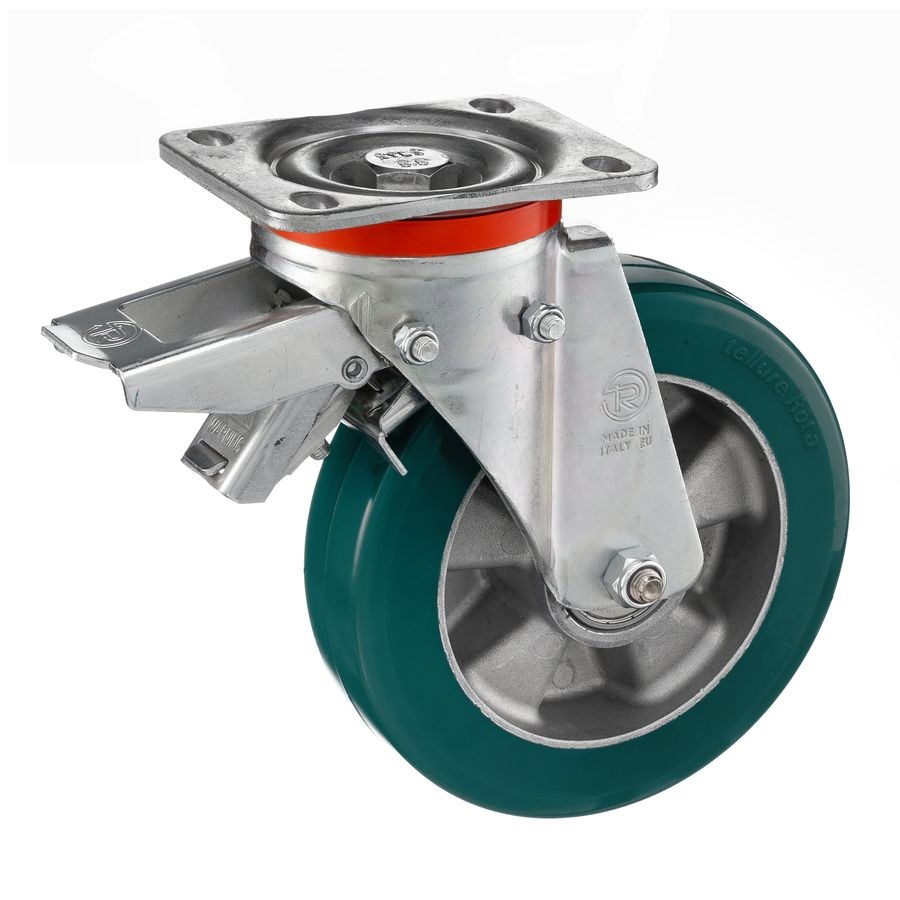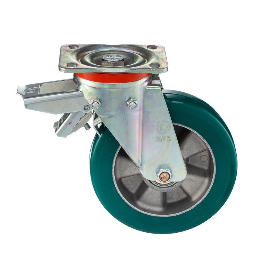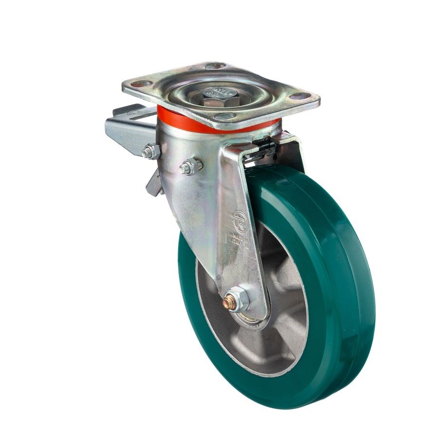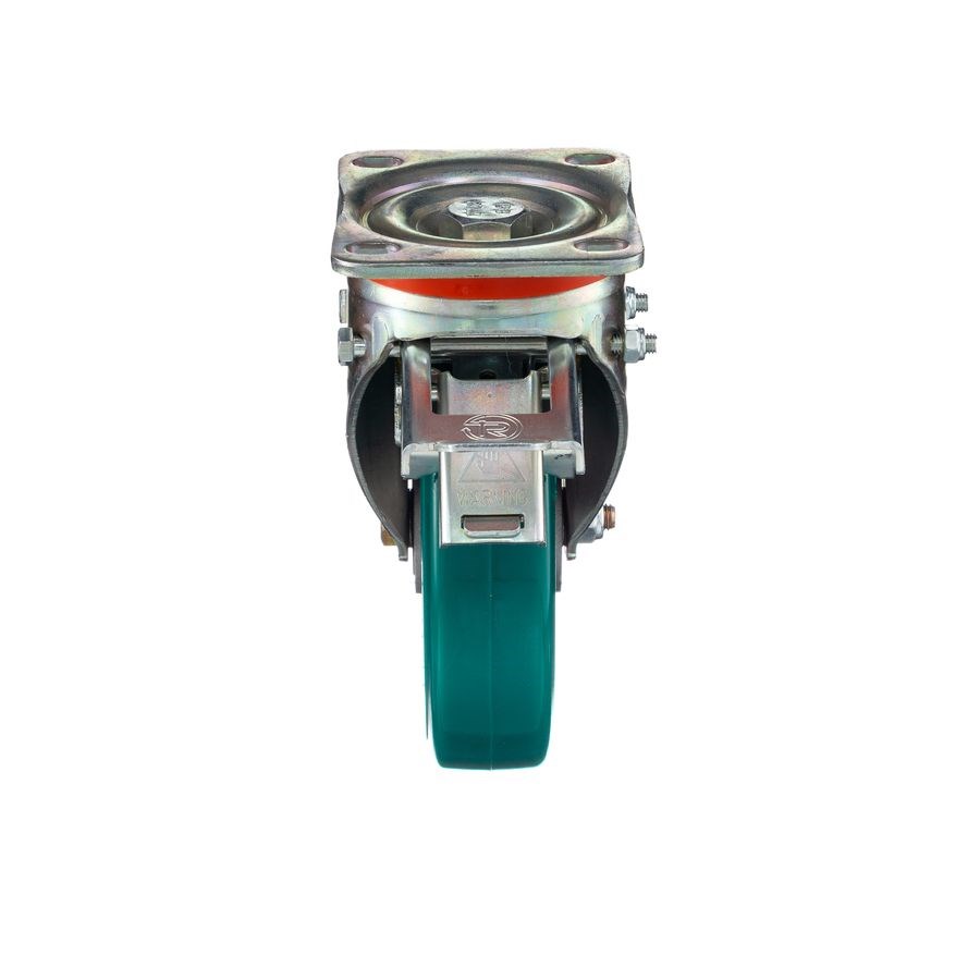 Колесо большегрузное поворотное с задним тормозом из эластичного полиуретана твердостью 75 Шор А.
