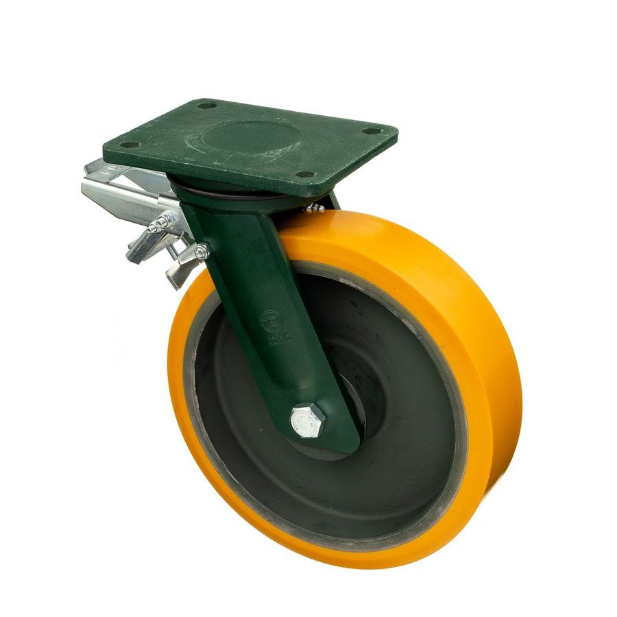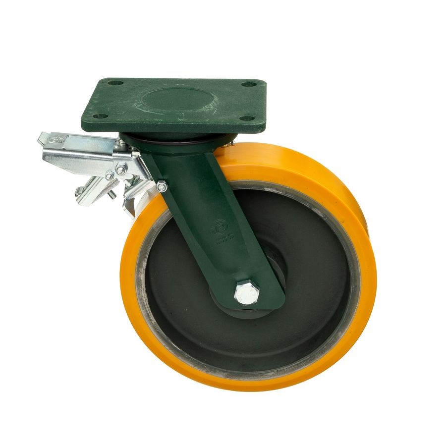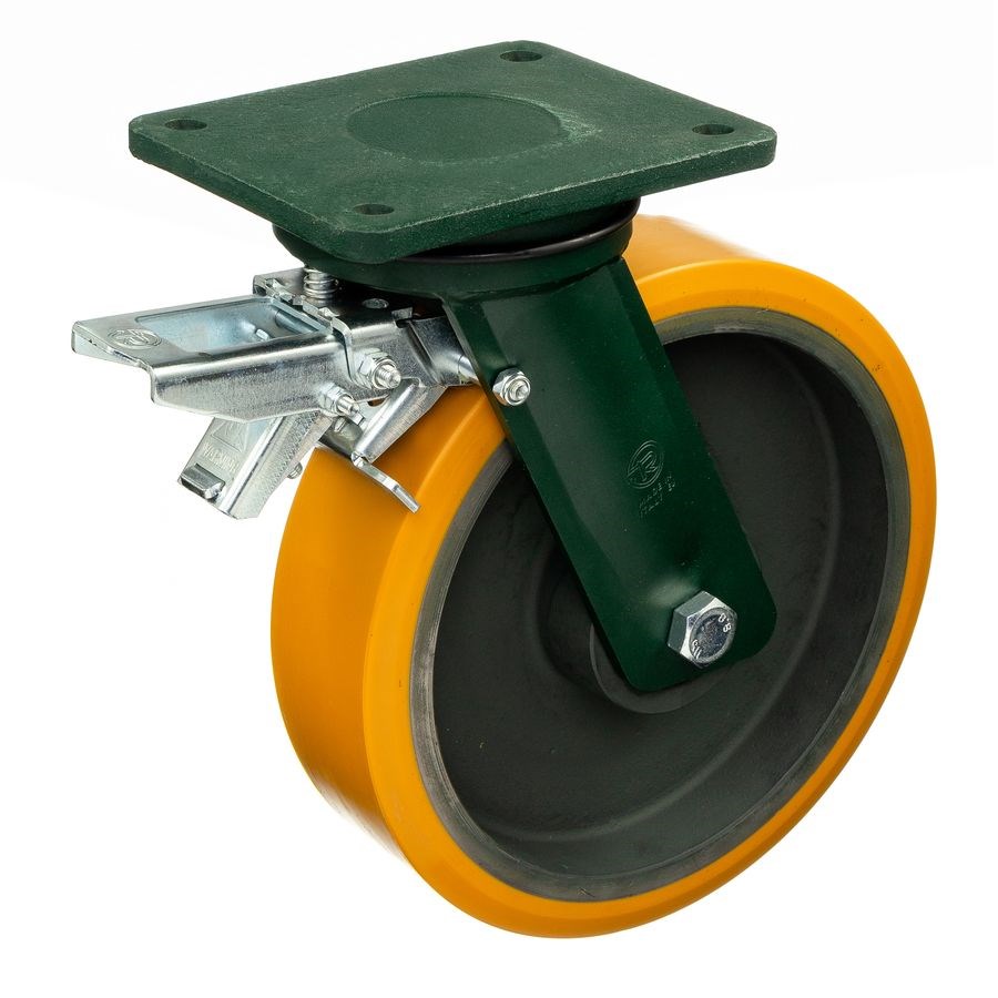 поворотное с задним тормозом, диаметр 250мм, грузоподъемность 1900кг, полиуретан TR, чугун, сверхпрочный кронштейн EEHD