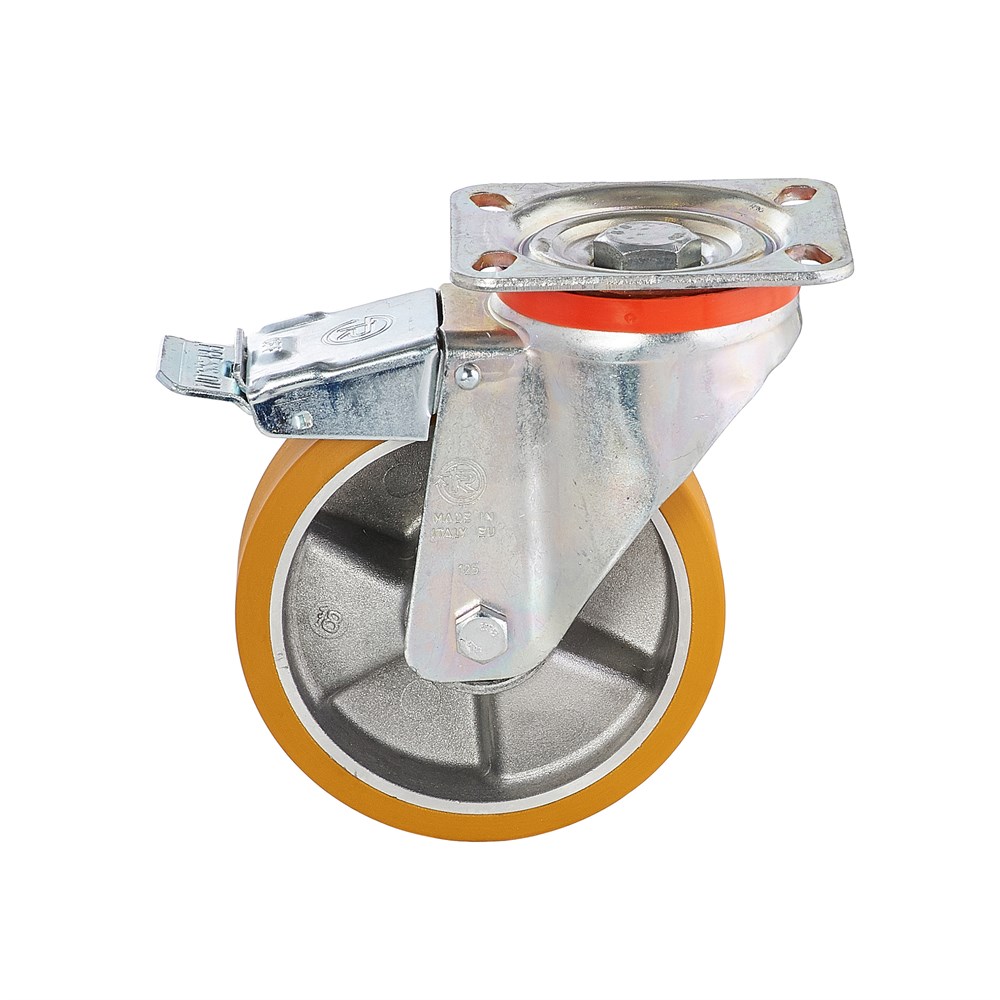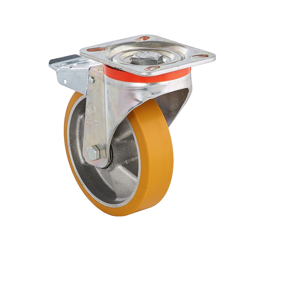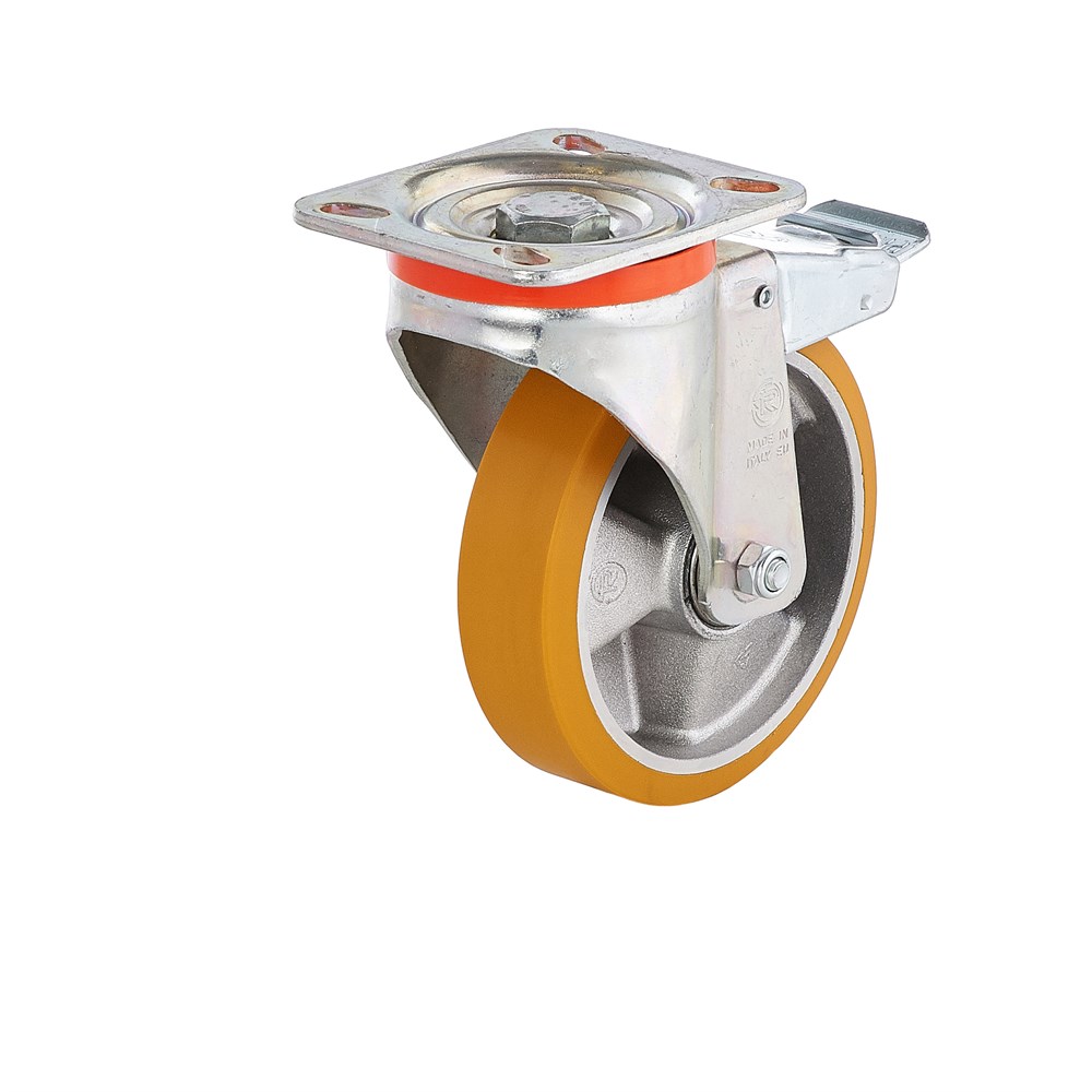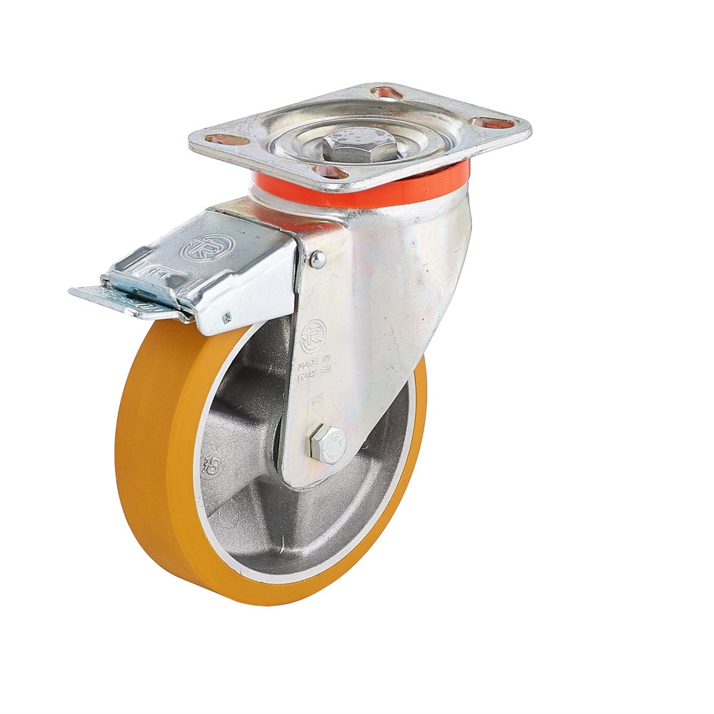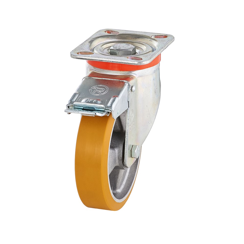 Колесо поворотное с передним тормозом из полиуретана TR твердостью 95 Шор А.