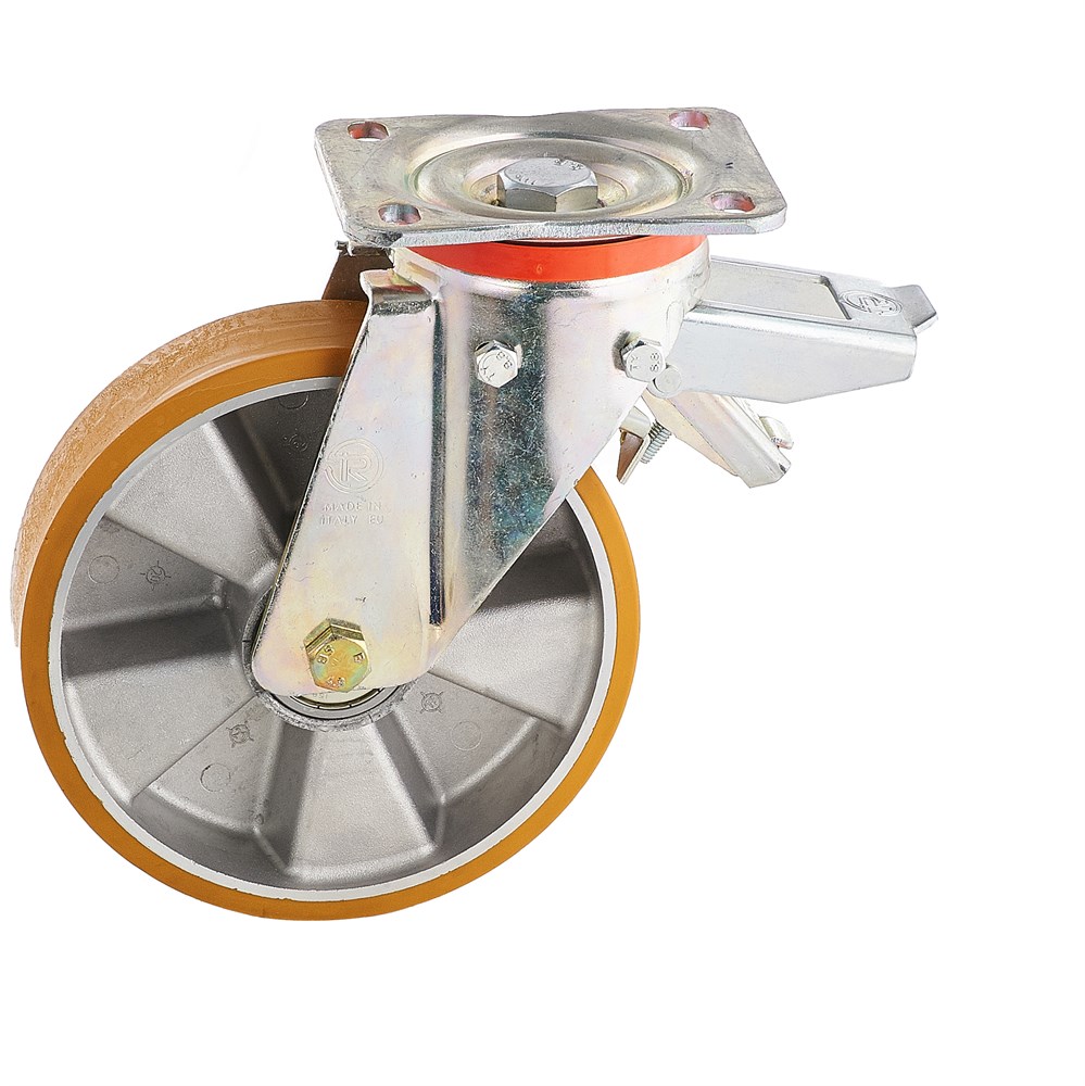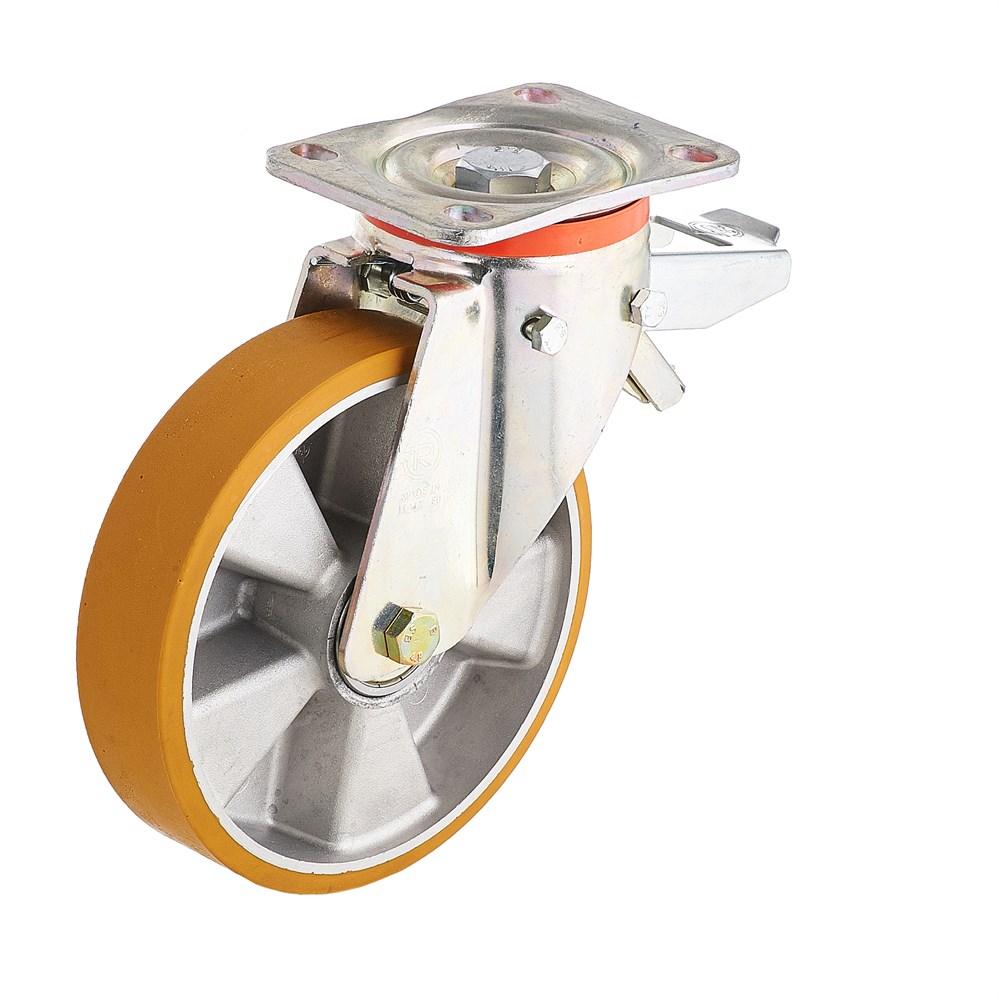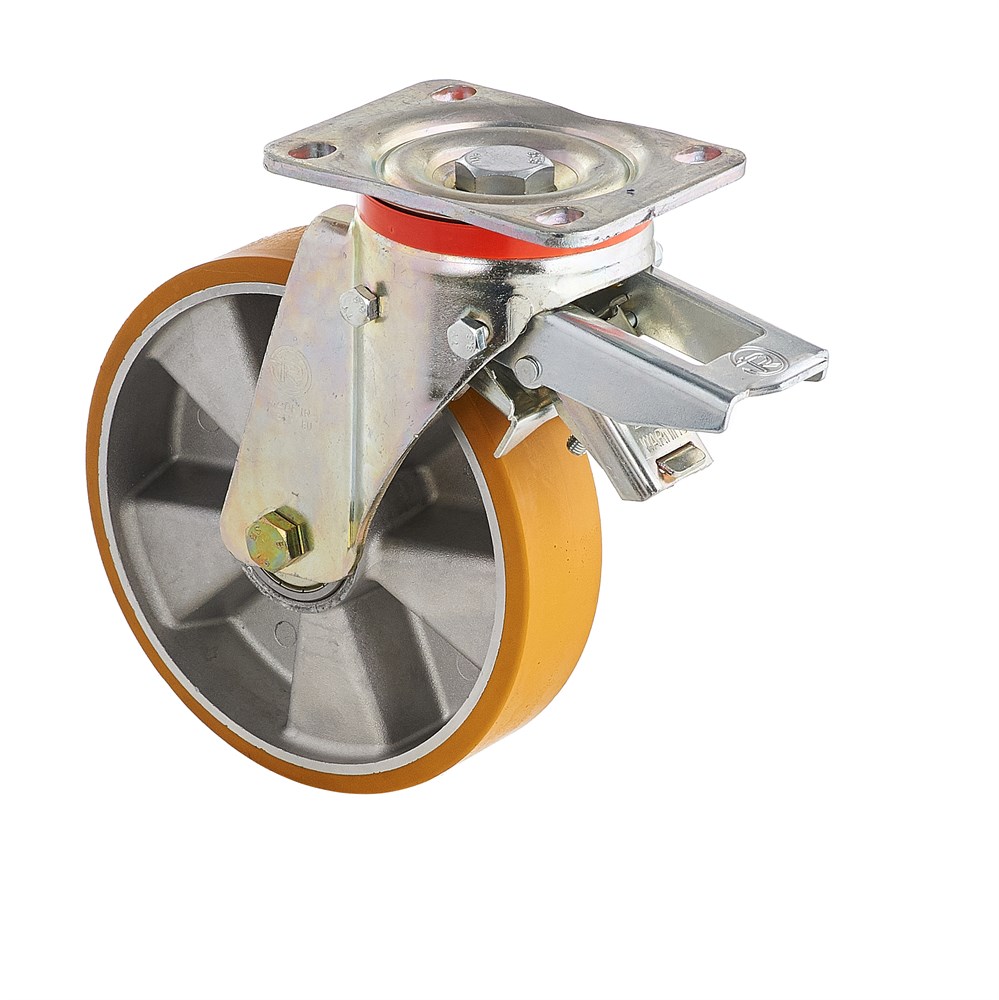 Колесо поворотное с задним тормозом из полиуретана TR твердостью 95 Шор А.