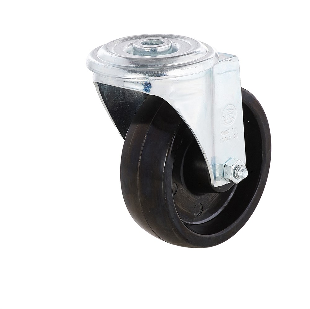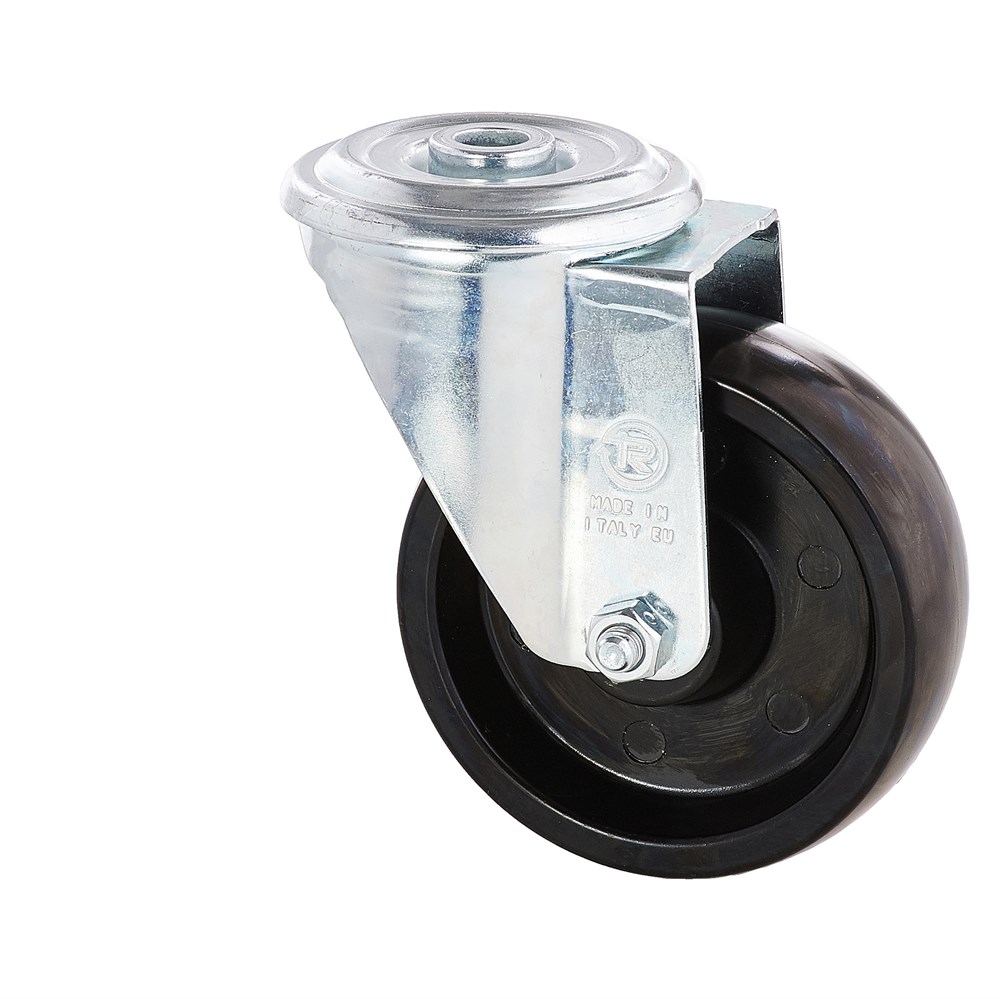 поворотное, диаметр 100мм, грузоподъемность 200кг, фенольная смола до 300С, классическая термостойкая втулка, центральное отверстие в опоре для крепления под болт 12мм