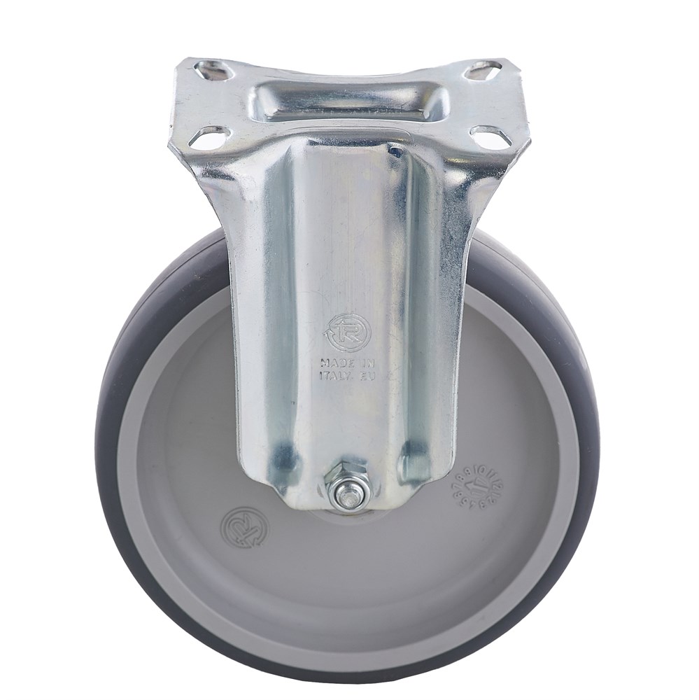 Основание: полипропилен. Ступица оснащена подшипником скольжения. Неповоротный кронштейн серии NL, крепление-площадка под 4 болта. Шина из серой резины, не оставляющей следов, бережно относится к декоративному и хрупкому напольному покрытию в общественных учреждениях, офисных и торговых помещениях. Превосходное скольжение гарантирует минимальное усилие при ручном передвижении. Возможно использование в агрессивных химических средах.
