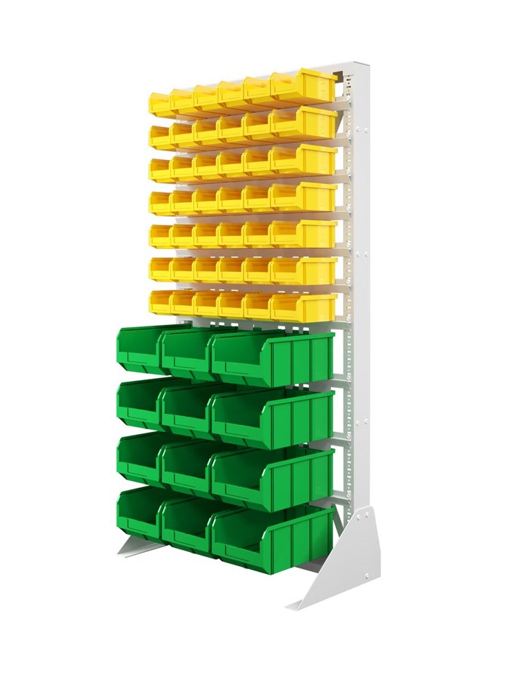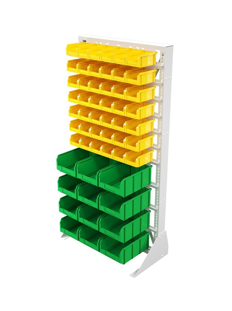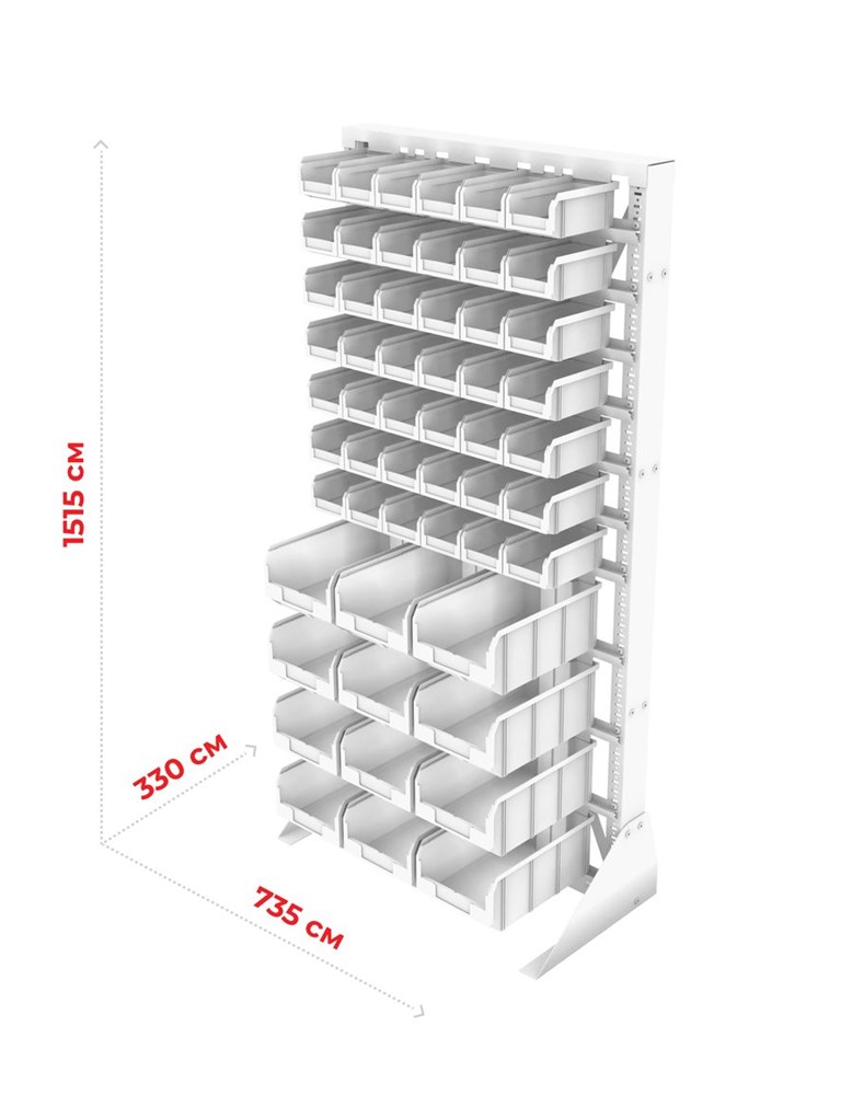 Используется для систематизации и хранения мелких подручных приспособлений и инструментов. Опоры стойки 735х1500 имеют возможность крепления к полу, что обеспечивает высокую устойчивость всей конструкции. Стойка оснащена ящиками различной вместимости, в количестве 54 штук, в каждом из которых предусмотрен специальный кармашек для опознавательной карточки - это позволяет эффективно систематизировать помещенные туда инструменты и приспособления. Сборка данной конструкции не требует от пользователя каких-либо специальных знаний и умений. Стойка не займет много места в авто-слесарной мастерской, на складе или в торговом помещении. Данная модель оснащена тремя типами ящиков открытого типа различной вместимости.