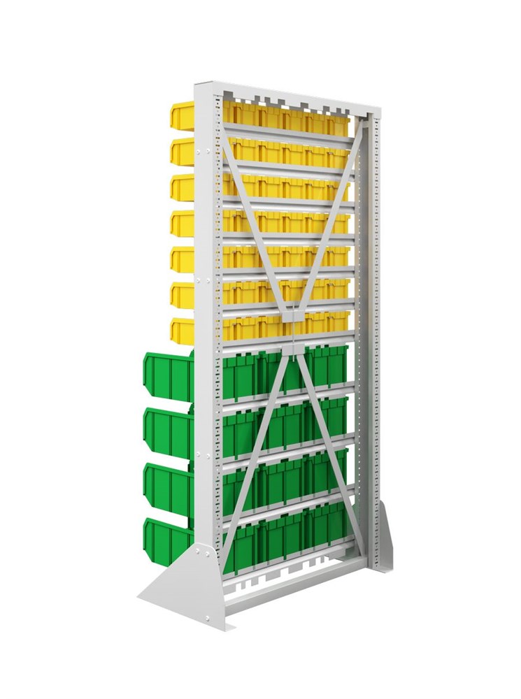 Преимущества: Хороший визуальный обзор содержимого. Каждый ящик оснащен специальным кармашком, позволяющим вставить этикетку для индикации содержимого. Конструкция стойки позволяет легко извлекать нужный ящик и так же легко устанавливать его на место. Быстрая сборка. Высокая прочность. Габариты: 735х330х1500мм., вес 28,6кг.