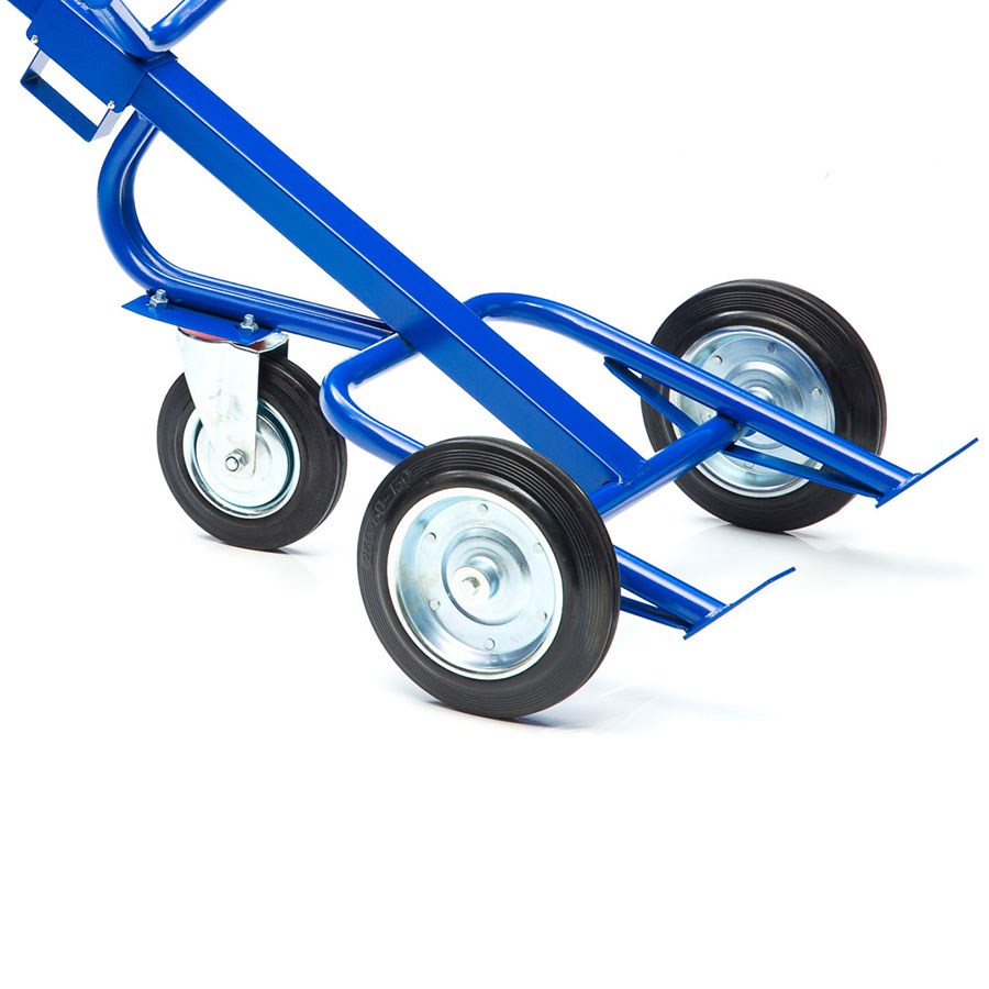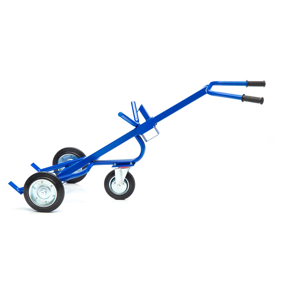 Конструкция сварная с усиленной рамой. Предусмотрены держатели для неподвижной фиксации бочек объемом 200л. Окрашенная металлическая конструкция не чувствительна к коррозии. Колеса изготовлены из высококачественной резины и рассчитаны на длительный срок службы. Для легкого перемещения предусмотрено дополнительное откидное колесо диаметром 200мм. Тележкой легко управлять, благодаря удобной высокой рукоятке.