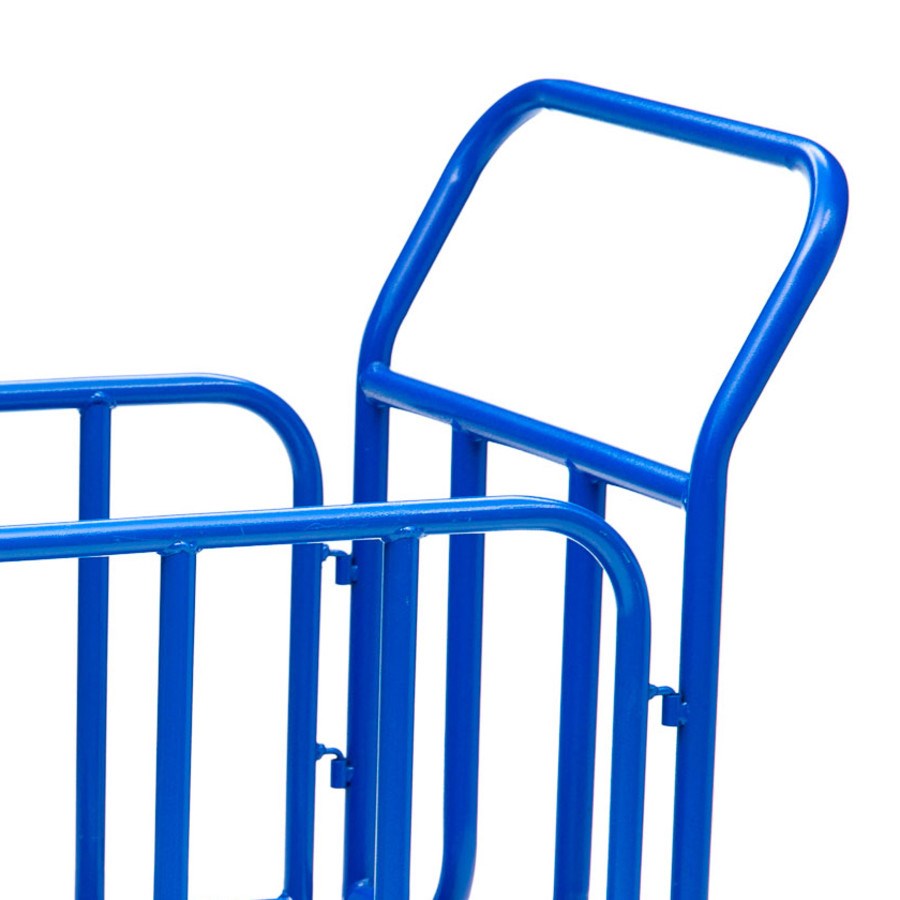 Платформенная 4-х колесная тележка с трубчатыми бортами КПО-300Т-200-И используется для транспортировки различных сборных грузов на оптовых базах и складах.