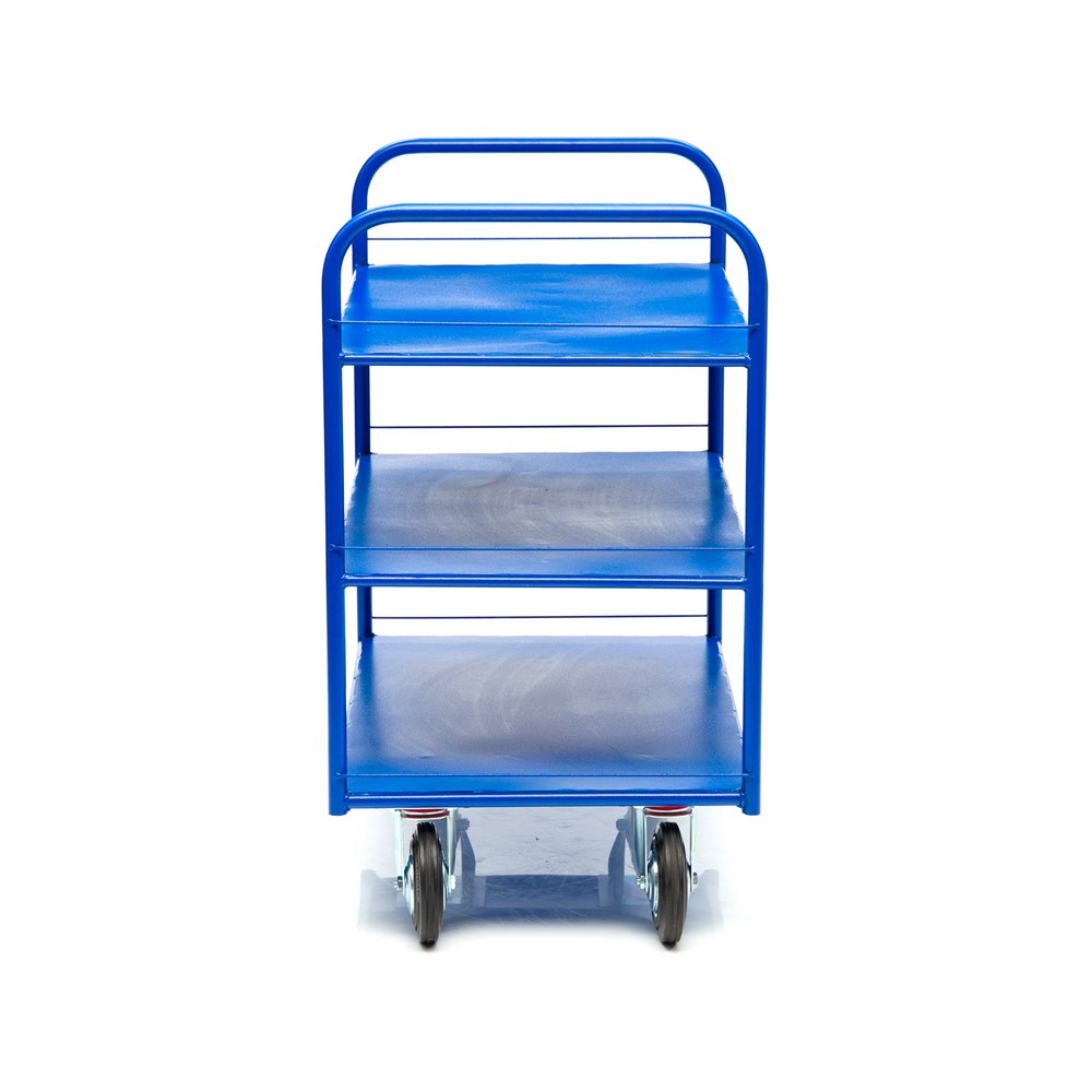 Благодаря наличию трех ярусов, тележка широко используется на складах, в торговых павильонах, а также в гостиничном и ресторанном бизнесе. Грузоподъемность до 450кг.