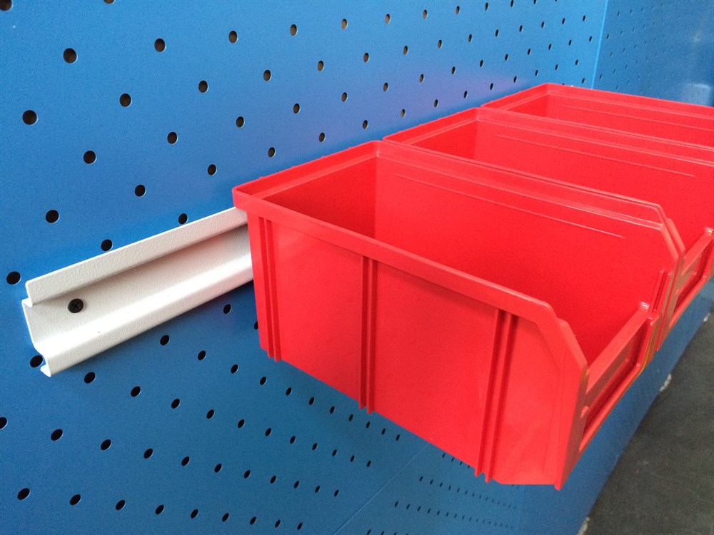 Органайзер в виде металлической планки вешается на стену, на экран верстака или над монтажным столом с помощью саморезов или винтов (крепеж для крепления к стене в комплект не входит и приобретается клиентом самостоятельно в зависимости от материала стены). Ящики типа V-2 легко снимаются с держателя для быстрого опустошения или наполнения содержимым, и с той же легкостью возвращаются на место. Яркие цвета ящиков помогают придать красок скучному рабочему пространству. Специальный карман на лицевой части позволяет размещать ярлык с описанием ассортимента хранящихся мелочей, для более быстрого поиска необходимого контейнера.