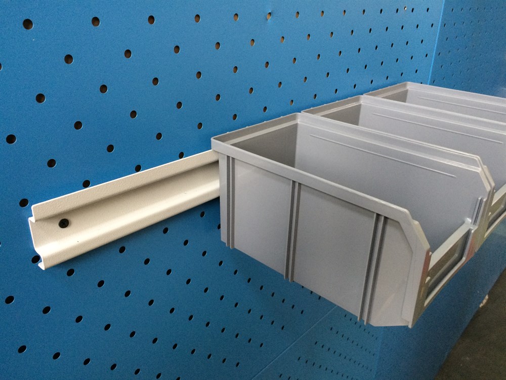 Органайзер в виде металлической планки вешается на стену, на экран верстака или над монтажным столом с помощью саморезов или винтов (крепеж для крепления к стене в комплект не входит и приобретается клиентом самостоятельно в зависимости от материала стены). Ящики типа V-2 легко снимаются с держателя для быстрого опустошения или наполнения содержимым, и с той же легкостью возвращаются на место. Яркие цвета ящиков помогают придать красок скучному рабочему пространству. Специальный карман на лицевой части позволяет размещать ярлык с описанием ассортимента хранящихся мелочей, для более быстрого поиска необходимого контейнера.