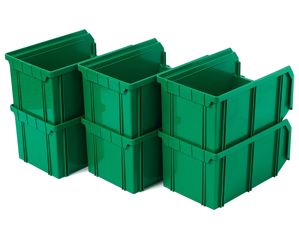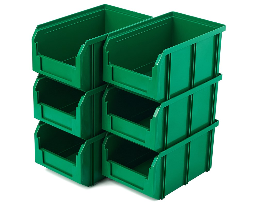 Комплект из 6 пластиковых ящиков Стелла-техник V-2-К6-зеленый широко применяется для организации мест хранения: инструментов, мелких деталей, различных комплектующих и запасных частей, узлов и агрегатов.