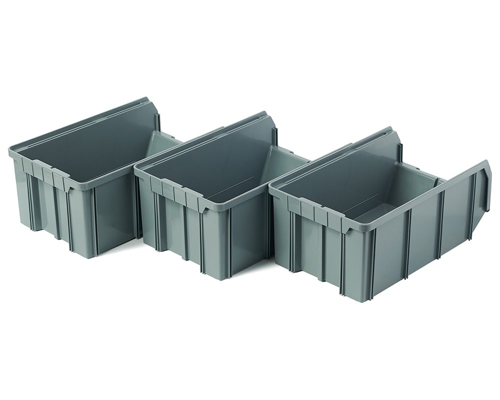 Комплект из 3 пластиковых ящиков Стелла-техник V-3-К3-серый широко применяется для организации мест хранения: инструментов, мелких деталей, различных комплектующих и запасных частей, узлов и агрегатов.