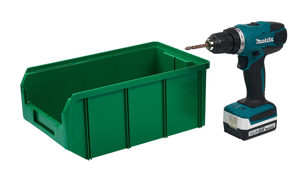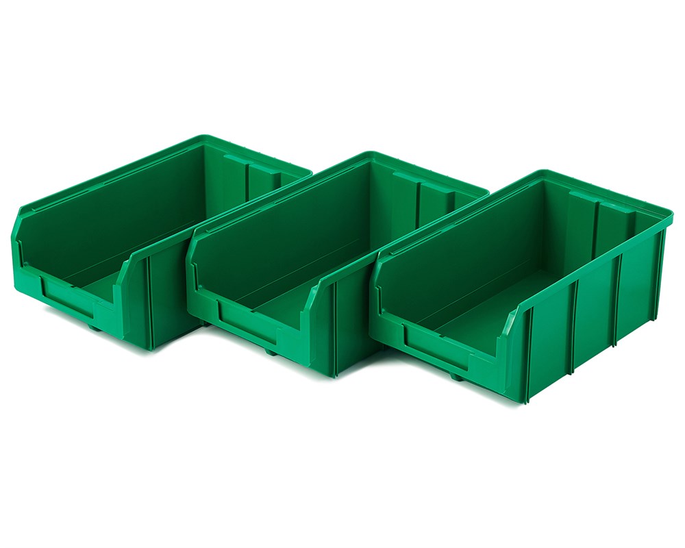 Пластиковый ящик V-3 зеленый (342х207х143мм.), широко применяется для организации мест хранения мелких деталей, различных комплектующих и запасных частей, различных узлов и агрегатов.
