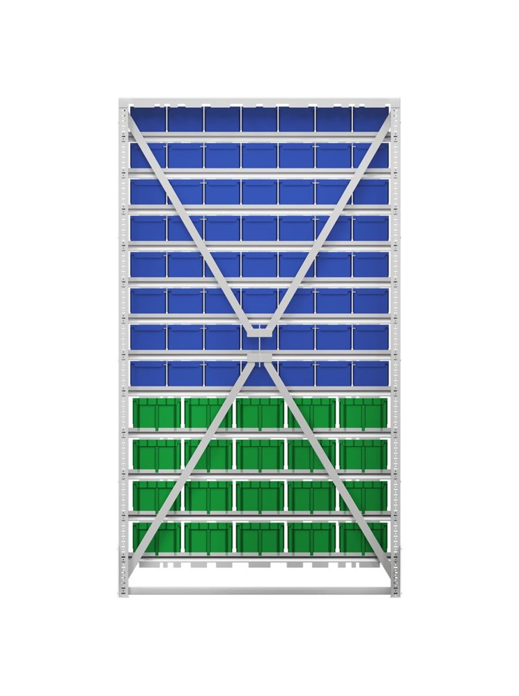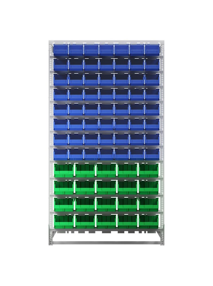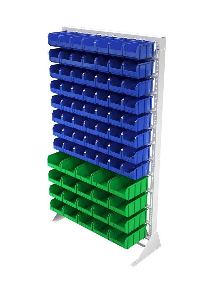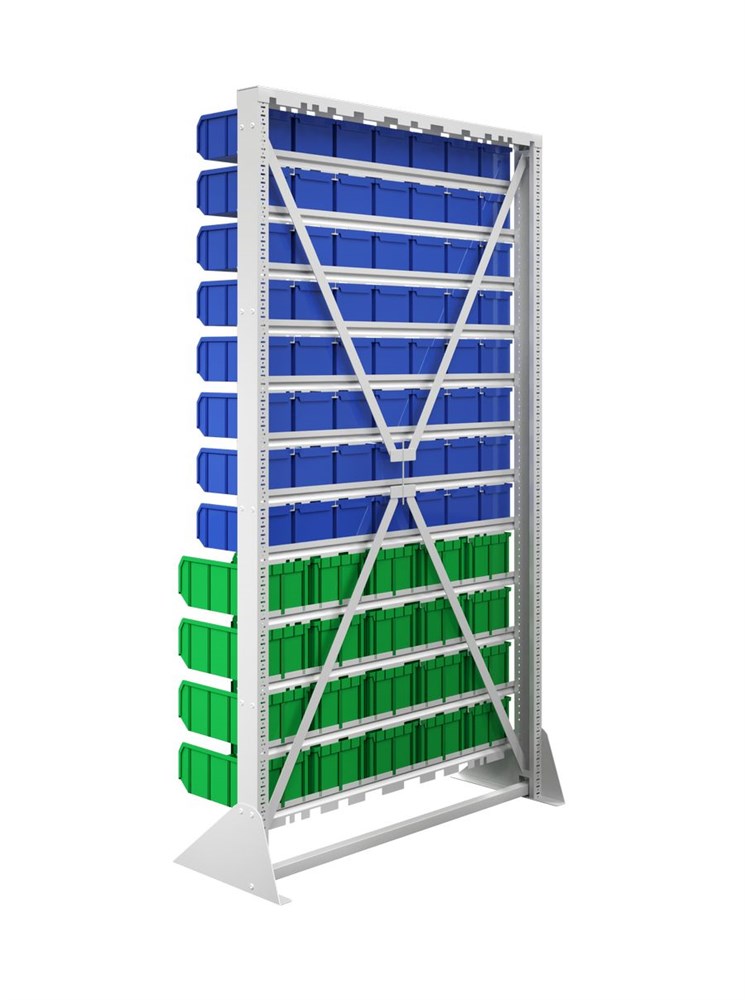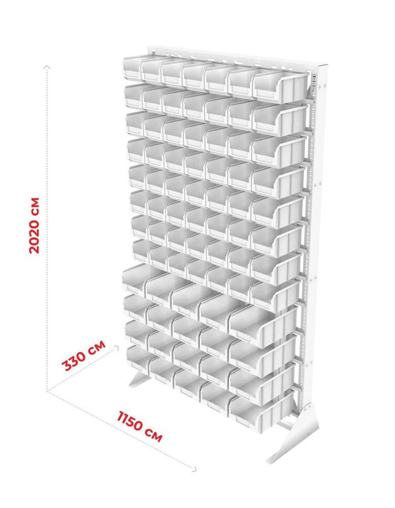 Преимущества: Хороший визуальный обзор содержимого. Каждый ящик оснащен специальным кармашком, позволяющим вставить этикетку для индикации содержимого. Конструкция стойки позволяет легко извлекать нужный ящик и так же легко устанавливать его на место. Быстрая сборка. Высокая прочность. Габариты: 1150х330х2000 мм., вес 54кг.