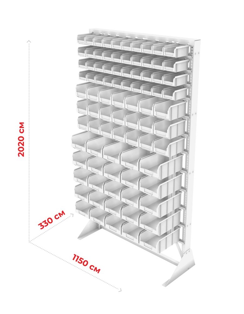 Используется для систематизации и хранения мелких подручных приспособлений и инструментов. Опоры стойки 1150х2000 имеют возможность крепления к полу, что обеспечивает высокую устойчивость всей конструкции. Стойка оснащена ящиками различной вместимости, в количестве 86 штук, в каждом из которых предусмотрен специальный кармашек для опознавательной карточки - это позволяет эффективно систематизировать помещенные туда инструменты и приспособления. Сборка данной конструкции не требует от пользователя каких-либо специальных знаний и умений. Стойка не займет много места в авто-слесарной мастерской, на складе или в торговом помещении.