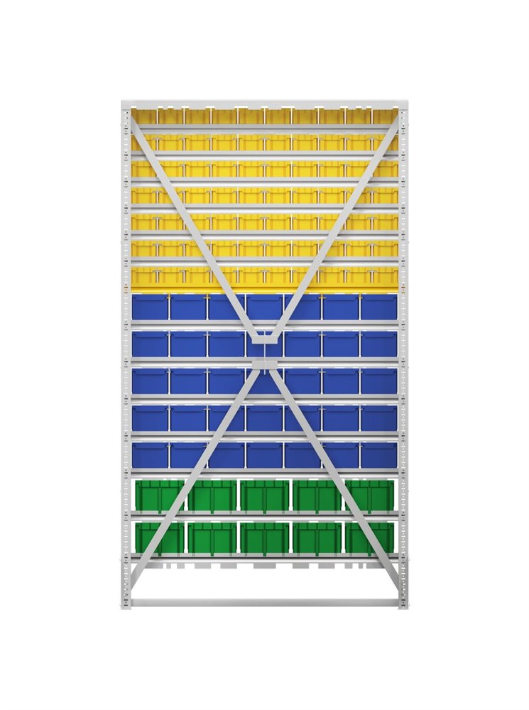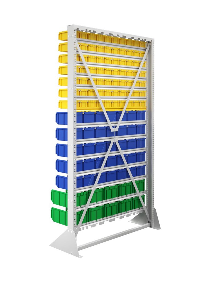 Преимущества: Хороший визуальный обзор содержимого. Каждый ящик оснащен специальным кармашком, позволяющим вставить этикетку для индикации содержимого. Конструкция стойки позволяет легко извлекать нужный ящик и так же легко устанавливать его на место. Быстрая сборка. Высокая прочность. Габариты: 1150х330х2000мм., вес 50кг.