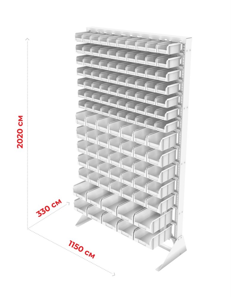 Используется для систематизации и хранения мелких подручных приспособлений и инструментов. Опоры стойки 1150х2000 имеют возможность крепления к полу, что обеспечивает высокую устойчивость всей конструкции. Стойка оснащена ящиками различной вместимости, в количестве 115 штук, в каждом из которых предусмотрен специальный кармашек для опознавательной карточки - это позволяет эффективно систематизировать помещенные туда инструменты и приспособления. Сборка данной конструкции не требует от пользователя каких-либо специальных знаний и умений. Стойка не займет много места в авто-слесарной мастерской, на складе или в торговом помещении.
