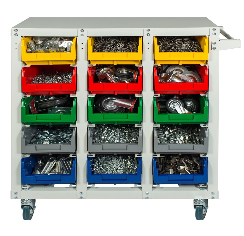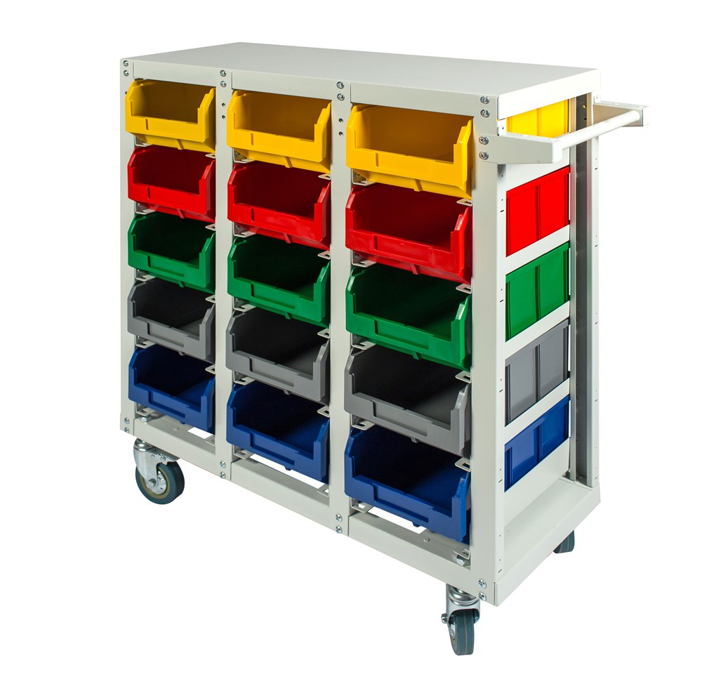 Предназначен для размещения контейнеров V-3 в отдельных ячейках на продольных направляющих. Подходит для эксплуатации в автомастерских, в строительных магазинах, на складах, где необходимо складирование мелкоштучных изделий и инструментов. При использовании вместе с колесами и ручкой, данный стеллаж становится мобильным, что значительно расширяет его функциональные возможности для перемещения вещей по территории предприятия, склада, цеха. Конструкция ящиков модели V3 обеспечивает быстрый и легкий доступ. Ящики открытого типа позволяют быстро находить нужные позиции, это возможно благодаря хорошему визуальному обзору содержимого. Конструкция стеллажа позволяет одним движением руки извлекать нужный ящик для его наполнения или опустошения, и так же легко устанавливать его на место.