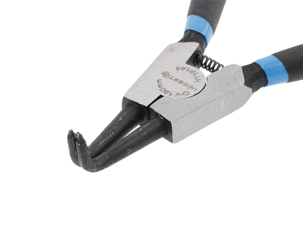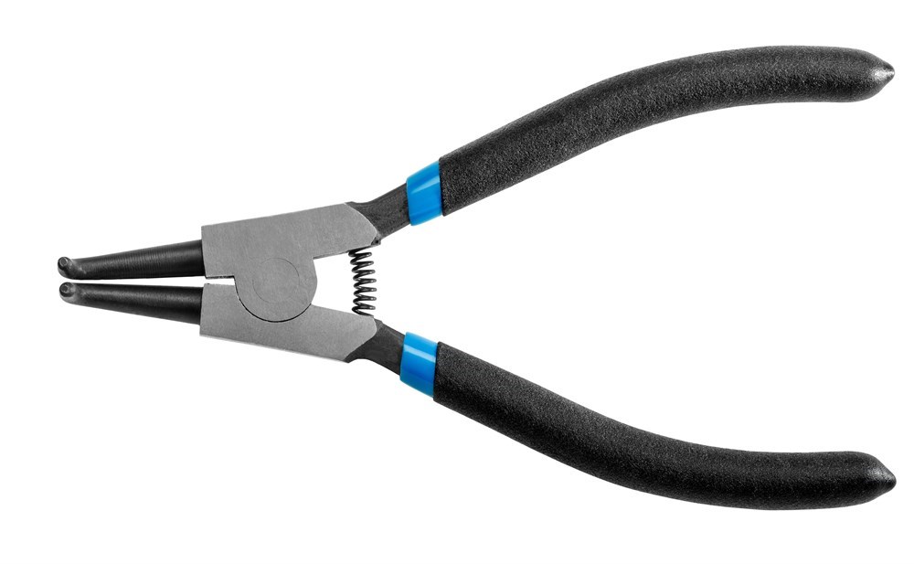 Клещи для монтажа и демонтажа наружных блокировочных колец. Рукоятка с пластиковым покрытием для удобного захвата и манипулирования клещами. Съемники для снятия и установки наружных стопорных колец. Ручки со специальной профилированной противоскользящей поверхностью обеспечивают надежный хват и удобство использования.
