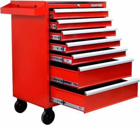 Инструментальная тележка (7 ящиков) KING TONY 87434-7B находит применение в автосервисе, производственном цехе, на станции технического обслуживания. Материалом корпуса служит листовая сталь. Усиленные ребра жесткости гарантируют прочность сварной конструкции и обеспечивают стабильную эксплуатацию под нагрузкой до 680 кг (на каждую полку не более 20 кг). Порошковое покрытие тележки отличается стойкостью к износу и ударам.